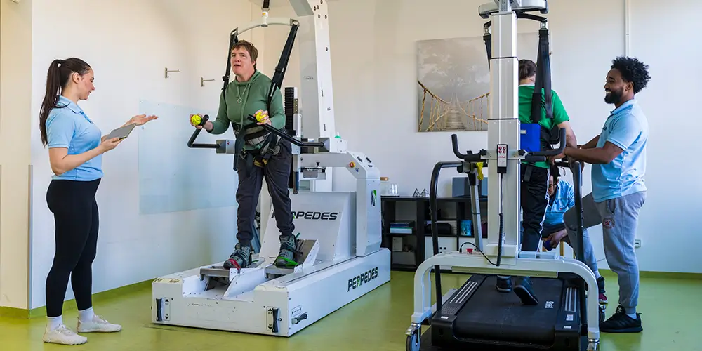 Mit modernster Spitzentechnologie und einem durchdachten Therapiekonzept verbinden wir das Beste aus zwei Welten. Innovative Therapieroboter wie der Gangroboter Perpedes oder verschiedene Armroboter ermöglichen ein intensives, wiederholtes Training, das Ihre Fortschritte beschleunigt.