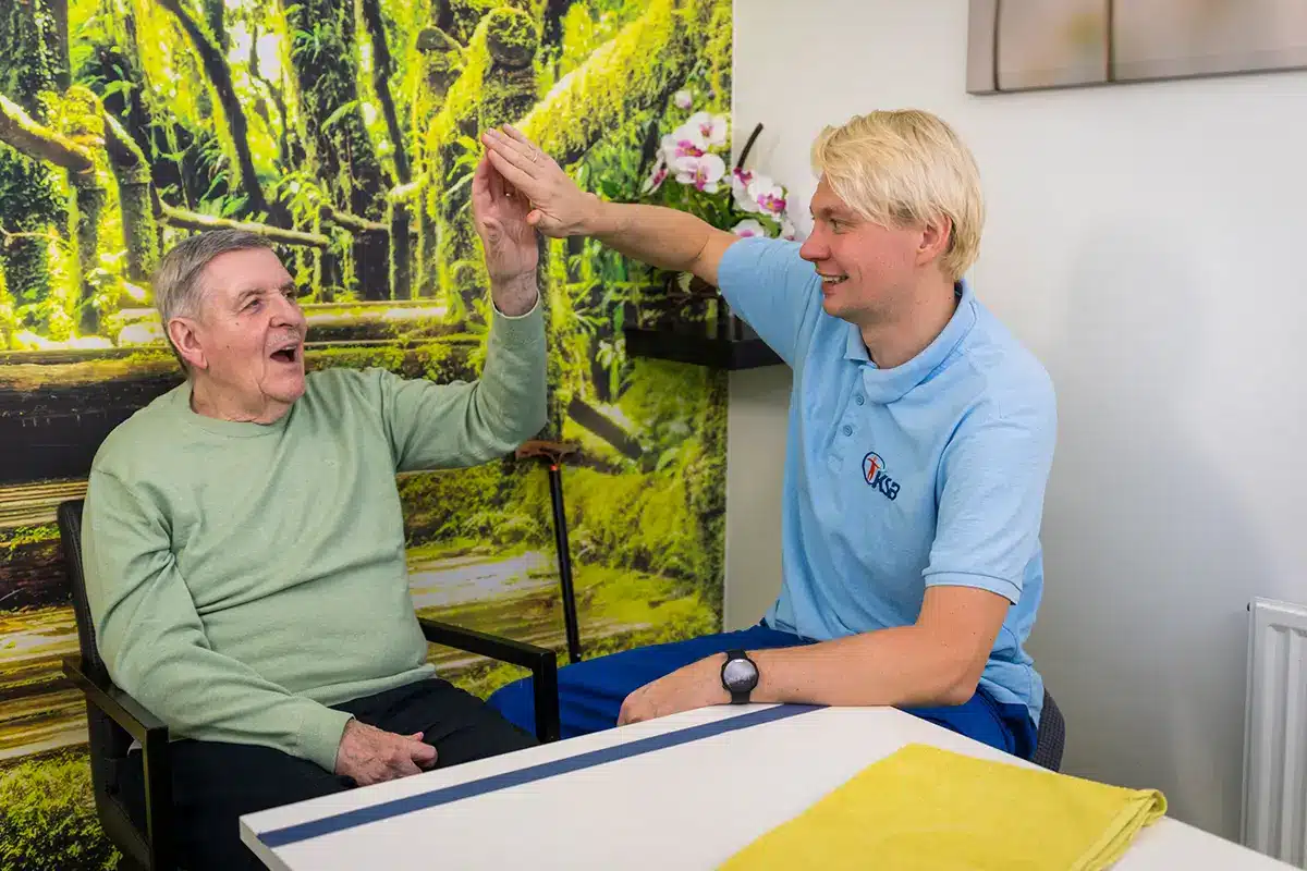 Im KSB arbeiten Sie in einem interdisziplinären Team aus Physio-, Ergo- und Sprachtherapeuten, das Menschen mit neurologischen Bewegungsstörungen auf ihrem Weg zu mehr Selbstständigkeit begleitet. Unsere Arbeit basiert auf wissenschaftlich fundierten Methoden – von evidenzbasierter klassischer Neurorehabilitation bis hin zu modernen ergänzenden Verfahren wie Gangrobotik, nicht-invasiver Hirnstimulation oder funktionaler Elektrostimulation.